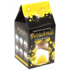 В каждом наборе из серии: красивая баночка, в которой удобно следить за выращиванием кристаллов, волшебный кристаллический порошок, кристаллическая таблетка, палочка для перемешивания, пробка, веревочка, карточка с пожеланием и инструкция.