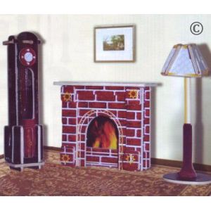 —Сборная деревянная модель 'Часы, лампа и камин' (цветная)