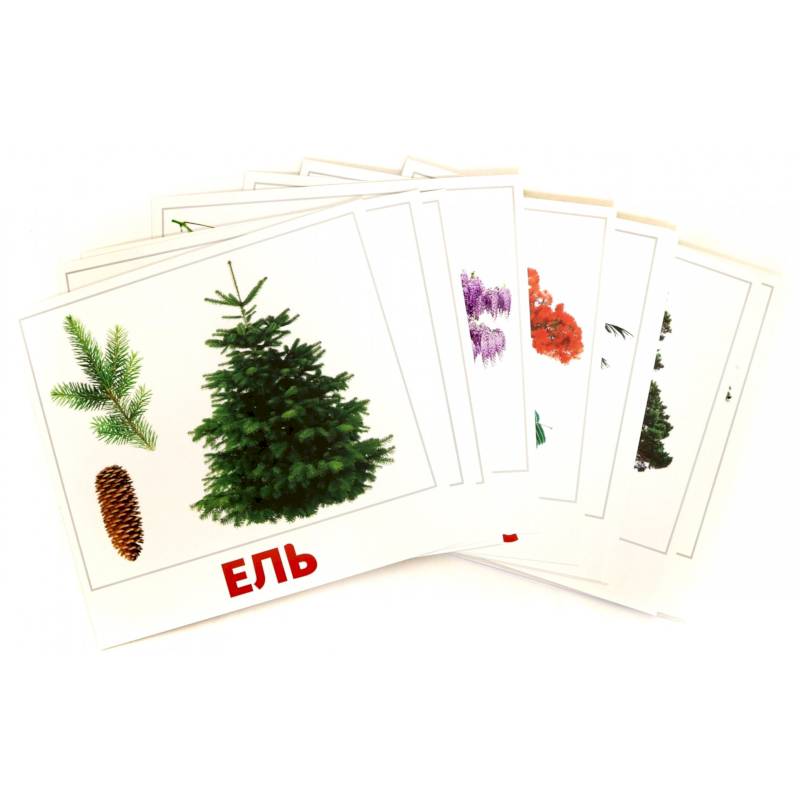 Набор из 20 больших карточек Глена Домана с фотографиями деревьев для детей от 0 до 8 лет на качественном картоне.