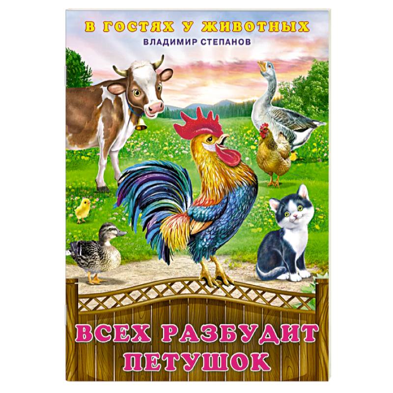Серия книг для малышей 'В гостях у животных'. Книга 'Всех разбудит петушок' сопровождается прекрасными иллюстрациями художника И. Приходкина и предназначена для детей младшего возраста. Короткая стихотворная форма изложения не наскучит малышу и поможет запомнить характерные звуки и особенности поведения домашних животных.