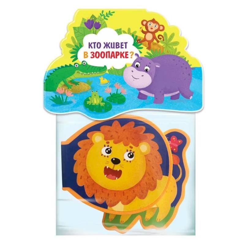 Малыши познакомятся с обитателями зоопарка. Полосатый тигр, зубастый крокодил, озорные обезьянки и другие животные ждут деток на странциах книжки-игрушки 'Кто живёт в зоопарке?'