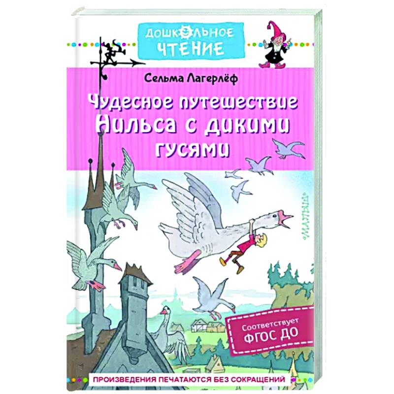 Сказочная повесть «Чудесное путешествие Нильса с дикими гусями» – это история взросления деревенского мальчишки Нильса. Проведя вместе со стаей диких гусей несколько месяцев, Нильс не только побывал во многих приключениях, но и изменился, стал ответственным, добрым и научился ценить дружбу. В книге использован классический пересказ А. Любарской и З. Задунайской, рисунки известных художников Э. Булатова и О. Васильева. В 1995 году по сказочной повести был снят мультфильм «Заколдованный мальчик».