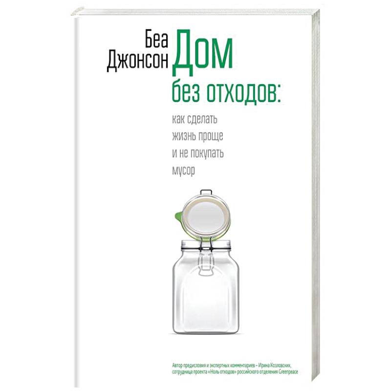 У нее нет мусорного ведра. А все отходы ее семейства сведены к одной литровой банке в год. Вы можете себе это представить? Одна банка мусора в год! Как Беа Джонсон этого добилась, все ее успехи и провалы на пути к экологичной жизни - в этой книге. Она откровенно делится тактиками и рецептами, которые пыталась внедрить в жизнь своей семьи. Не все читатели смогут повторить эксперименты автора и не все пойдут так далеко, как она. Но большинство рекомендаций из книги все же легко адаптировать к условиям собственной жизни.