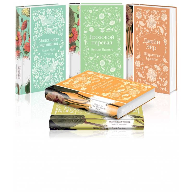 В комплект вошли 'Джейн Эйр', 'Вдали от обезумевшей толпы', 'Маленькая хозяйка большого дома', 'Грозовой перевал' и 'Маленькие женщины' - пять классических женских романов, которые приятно читать и приятно дарить.
