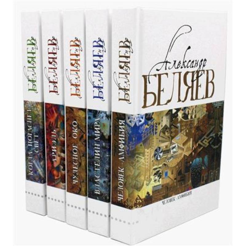 Александр Романович Беляев (1884-1942) — один из основоположников жанра научной фантастики в нашей стране. Прикованный к постели писатель жил в изумительном мире, созданном его воображением. Силой своей фантазии он рисовал будущее, предвосхищая возможность дальнейших открытий и новых достижений. Из пятидесяти научных предвидений Беляева многие сбылись или принципиально осуществимы, и только три считаются ошибочными. Том 1 В данный том Собрания сочинений вошли романы «Голова профессора Доуэля», «Последний человек из Атлантиды», «Человек-амфибия», а также повесть «Остров Погибших Кораблей». Том 2 В данный том Собрания сочинений вошли романы «Вечный хлеб», «Властелин мира», «Золотая гора», «Подводные земледельцы», а также повесть «Продавец воздуха». Том 3 В данный том Собрания сочинений вошли романы «Человек, потерявший лицо», «Прыжок в ничто», «Воздушный корабль» и «Чудесное око». Том 4 В данный том Собрания сочинений вошли романы «Звезда КЭЦ», «Лаборатория Дубльвэ», «Человек, нашедший свое лицо» и «Ариэль». Том 5 В данный том Собрания сочинений вошел роман «Когда погаснет свет», а также рассказы писателя.