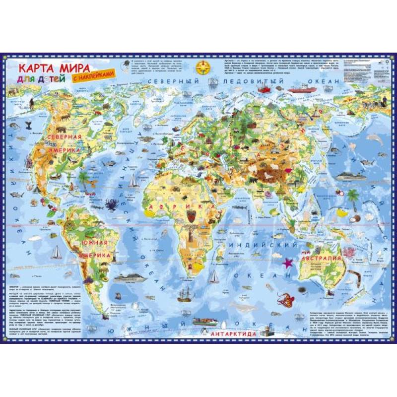 Надписи на карте даны крупным шрифтом. Рекомендуем детям от 4 лет. Игровые занятия с нашей картой расширяют кругозор и словарный запас, тренируют память, внимание, наблюдательность, смекалку и творческие способности.