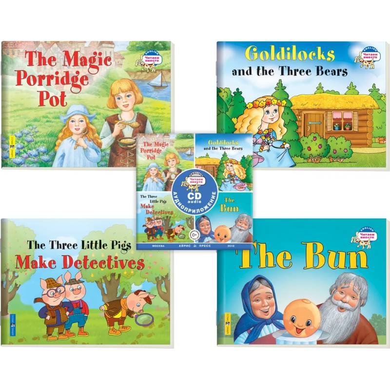 Комплект состоит из CD-диска и 4 книжек с адаптированными детскими сказками на английском языке.