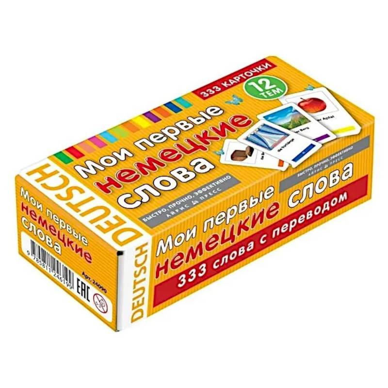 Эти удивительные карточки представляют собой обучающий тренажер для детей, а также взрослых, начинающих изучать немецкий язык. Современный авторский курс разработан для обучения младших школьников и дошкольников в возрасте от 6 лет правильному навыку произношения, чтения и письма на немецком. В наборе более 300 умных карточек на 12 различных тем. На каждом элементе есть картинки, подходящие к ним часто употребляемые иностранные слова, относящиеся к базовой лексике, транскрипция и перевод на русский язык. На каждой карточке находится изображение, по теме животных, еды, людей и другое, а также слово на немецком языке и транскрипция, а на обороте изображение и перевод слова. Комплект дополнен пустыми карточками для того, чтобы вписать новые, необходимые вам иностранные слова