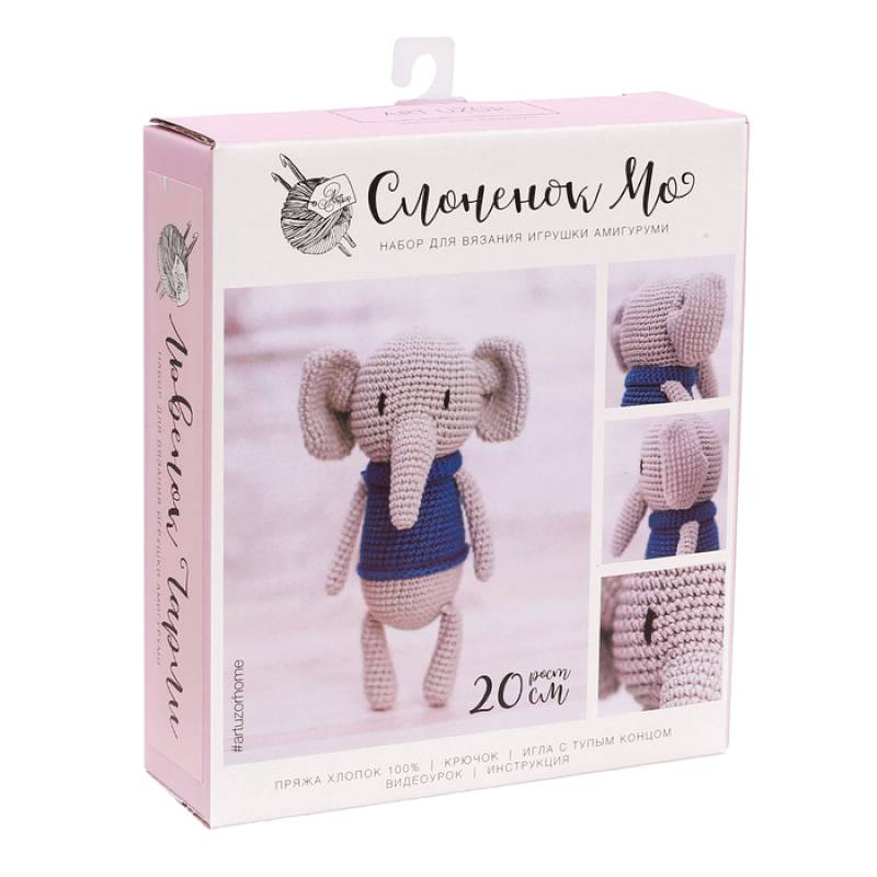 —Амигуруми: Мягкая игрушка «Слоненок Мо», набор для вязания, 10x4x14 см