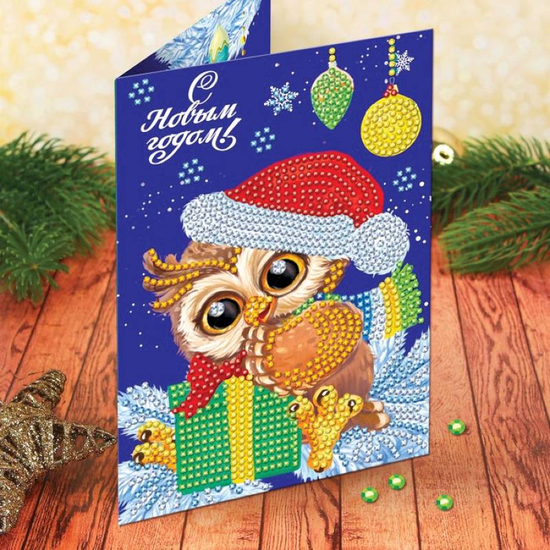 Алмазная вышивка на открытке «Весёлог...